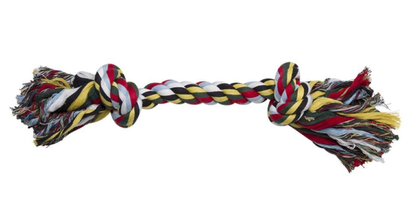 Această frânghie dentară de mărimea XL, fabricată din bumbac, este perfectă pentru câinii de talie mare care iubesc activitățile de aducere, tragere și mestecat, oferind în același timp suport pentru o igienă orală sănătoasă. Fibrele rezistente din bumbac sunt plăcute de ros și ajută la curățarea dinților și la menținerea sănătății gingiilor pe măsură ce câinele se joacă. Datorită greutății de 400 g, această frânghie este robustă, durabilă și concepută pentru câini puternici, fiind o jucărie potrivită pentru consumul de energie și pentru stimulare fizică. Ca orice jucărie din frânghie, este destinată doar jocului și nu consumului, iar câinele trebuie supravegheat în timpul utilizării.
