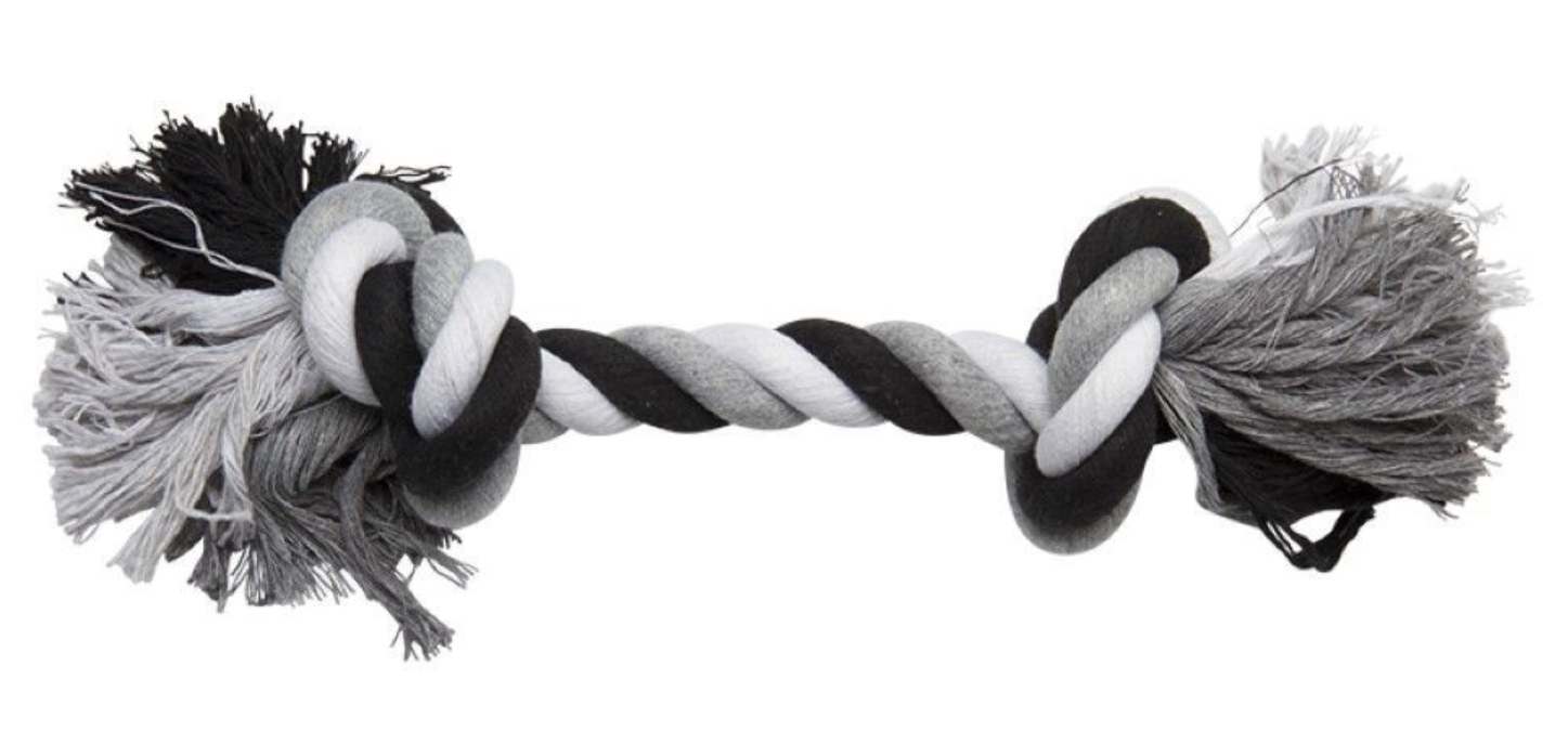 Această frânghie dentară Topmast în culorile negru/alb, mărimea S, este jucăria perfectă pentru câinii care adoră activitățile de aducere, tragere și mestecat, oferind o experiență interactivă și benefică pentru igiena orală. Frânghia este prevăzută cu un nod robust la fiecare capăt, ceea ce o face ușor de aruncat, prins și transportat în timpul jocului. Construită din fibre de bumbac, jucăria ajută la curățarea dinților câinelui pe măsură ce acesta mestecă, contribuind la o igienă orală sănătoasă și la masarea gingiilor. Această jucărie este ușoară, durabilă și ideală pentru câinii de talie mică, oferindu-le o activitate plăcută și utilă în același timp. Frânghiile dentare sunt concepute pentru joacă, nu pentru consum, iar supravegherea este recomandată.