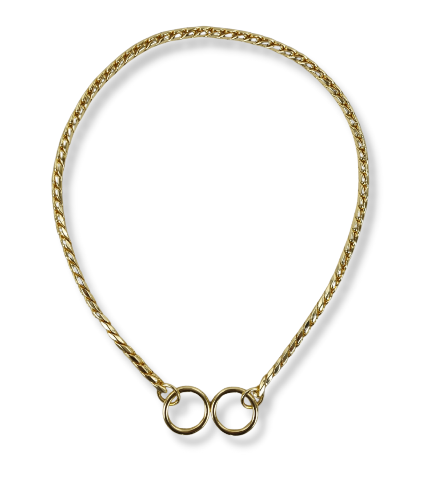 Zgarda slip-on Topmast din alamă aurită este alegerea perfectă pentru prezentarea câinelui în expoziții canine. Concepută special pentru a păstra blana ordonată și netedă, această zgardă este extrem de ușoară, nu creează linii sau urme și oferă un aspect elegant și profesionist în ring.